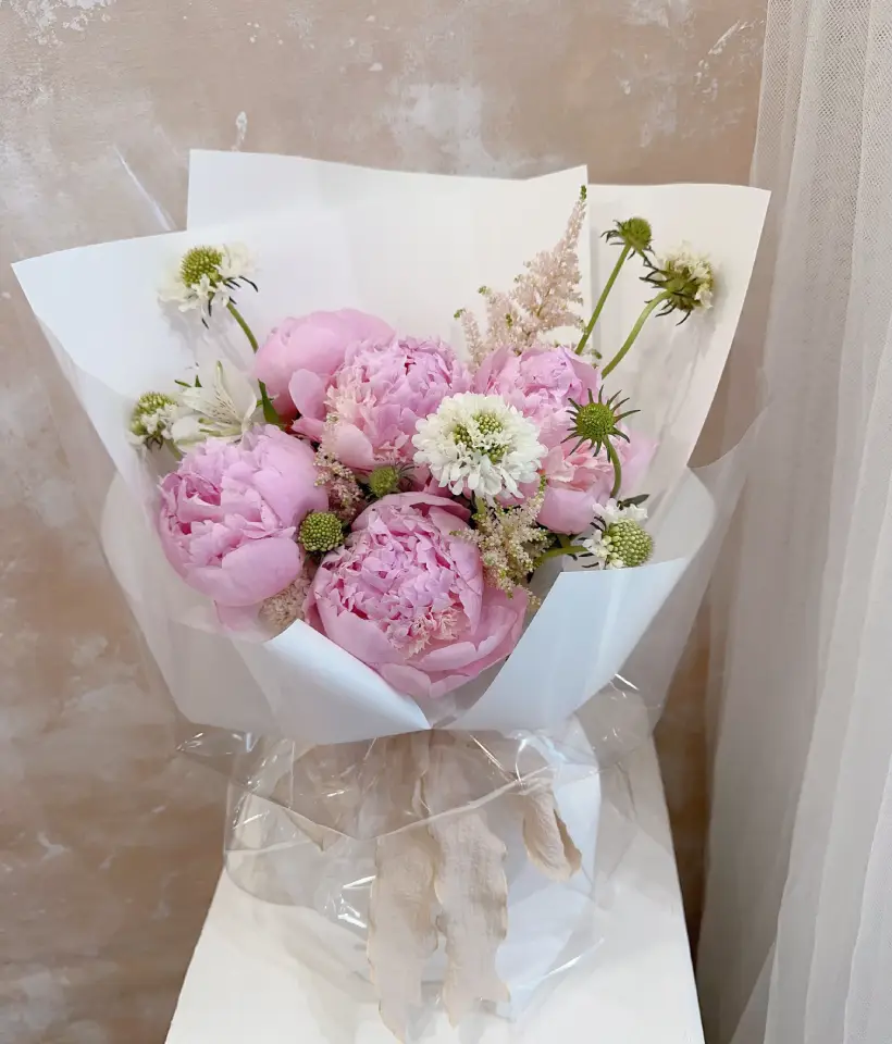 Peony bouquets captivate with their lush, full blooms and romantic allure. Known for their luxurious appearance, they bring a sense of elegance and prosperity to any occasion.