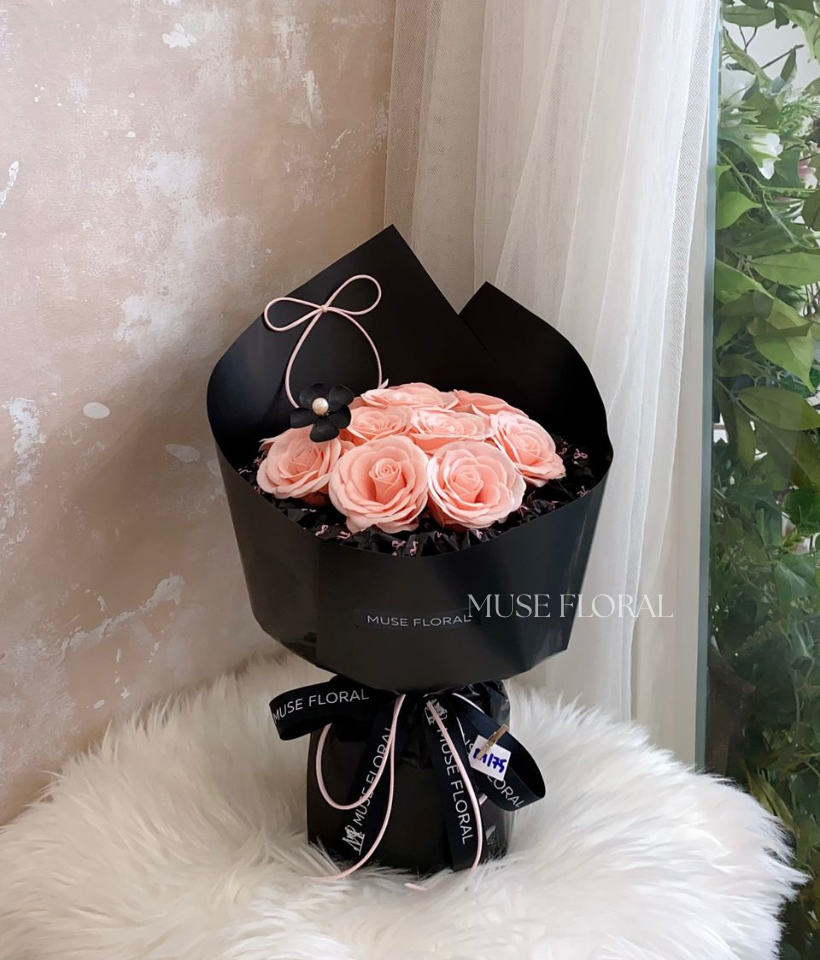 Delight in the lasting charm of our hand-crafted soap flower bouquets, featuring lifelike roses and delicate blooms in various colors.